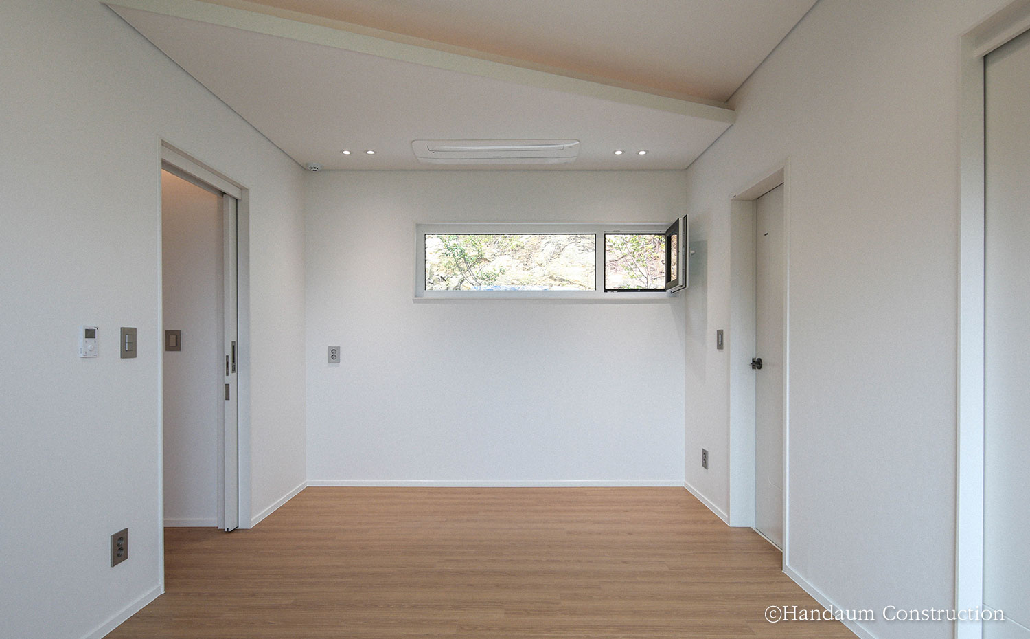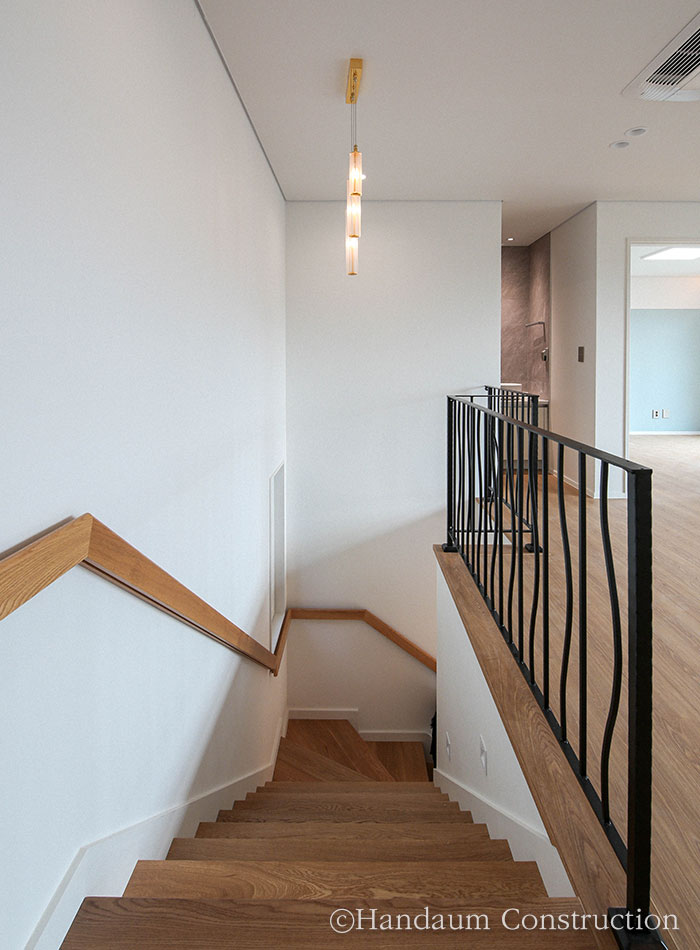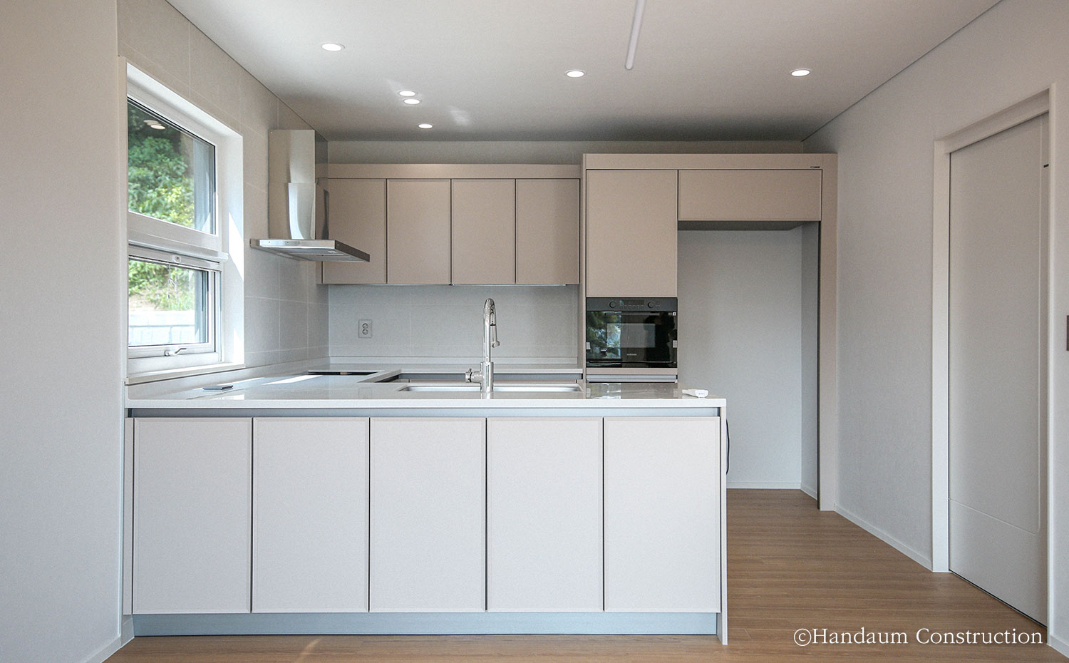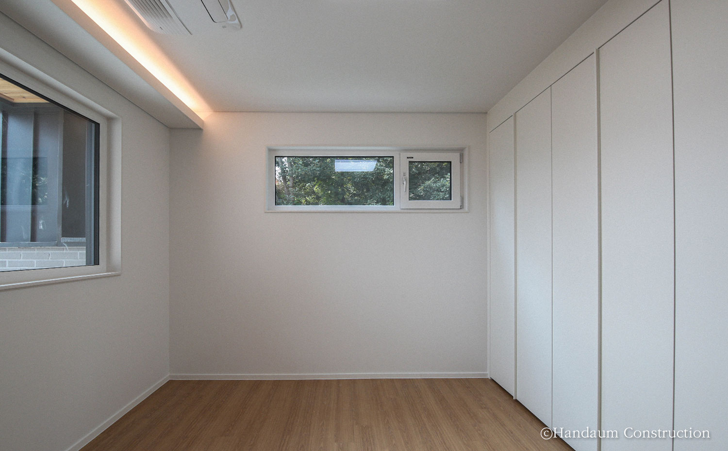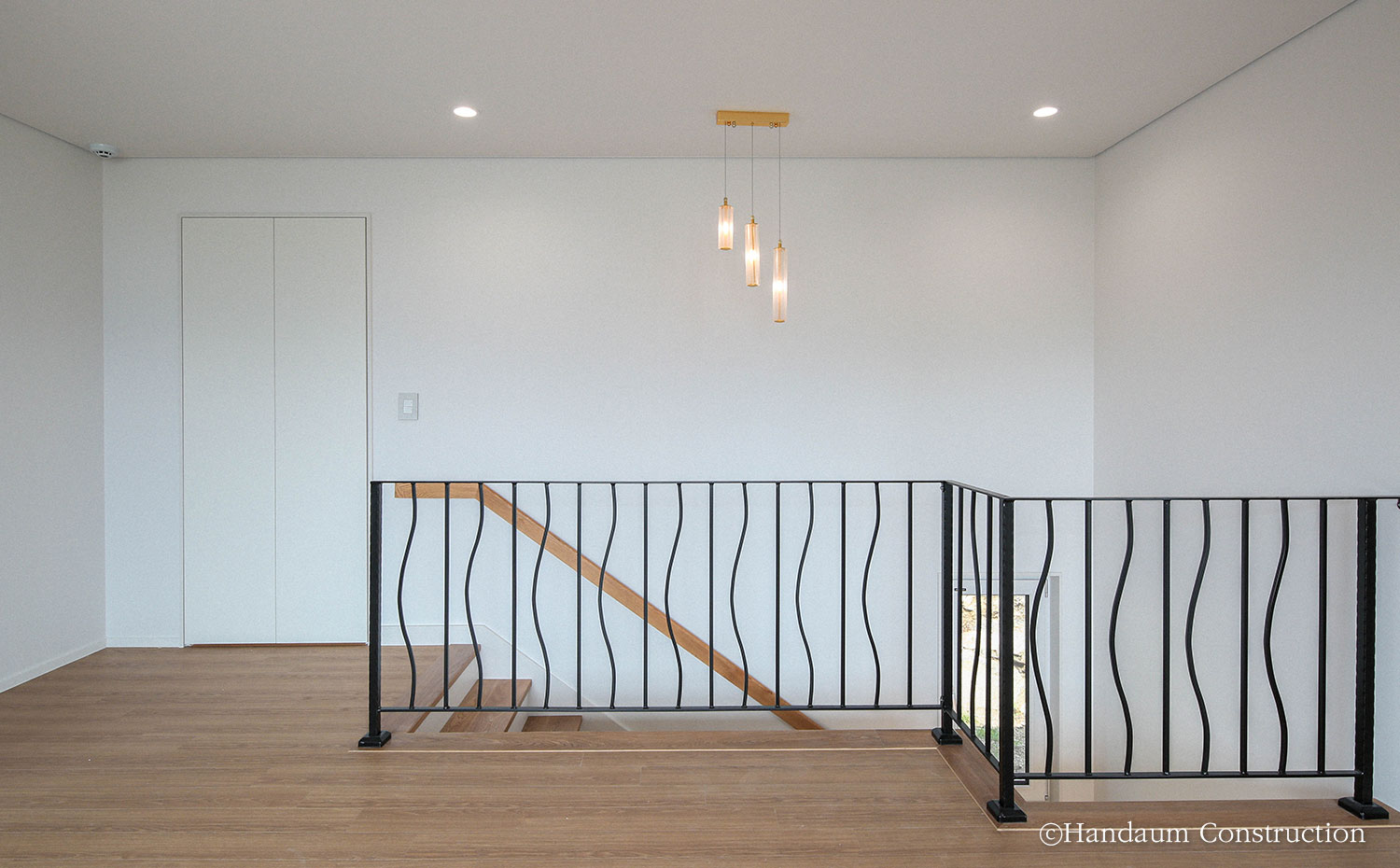 양평은 서울에서 멀지 않은 곳에 위치해 있어 직주근접형 전원주택지로 전원생활을 그리는 수요자들이 많이 찾는 지역 중 하나이다. 그중에서도 남한강을 마주하는 남향 대지는 뷰와 향을 모두 만족할 수 있어 전원주택지를 찾는 이들에게 인기가 높을 수밖에 없다. 양평에 이제 막 완공된 PH-088 주택은 땅이 가지는 좋은 조건들을 수용하며 모던한 스타일의 주택을 그리던 건축주의 취향을 잘 녹여낸 중목구조 주택이다. 전반적인 입면 디자인은 건축주가 그리던 형태를 충족할 수 있도록 면과 선이 강조된 심플한 형태를 가질수 있도록 하였으며, 모든 실이 좋은 조망을 누리되 구성이 답답하지 않도록 실을 배치하였다. 중목구조 주택이지만 모던한 외부 형태와 어우러지도록 비노출 인테리어를 적용한 내부는 베이스 컬러를 화이트 톤에 맞추되 웜톤의 조명으로 아늑함을 살려내었다.