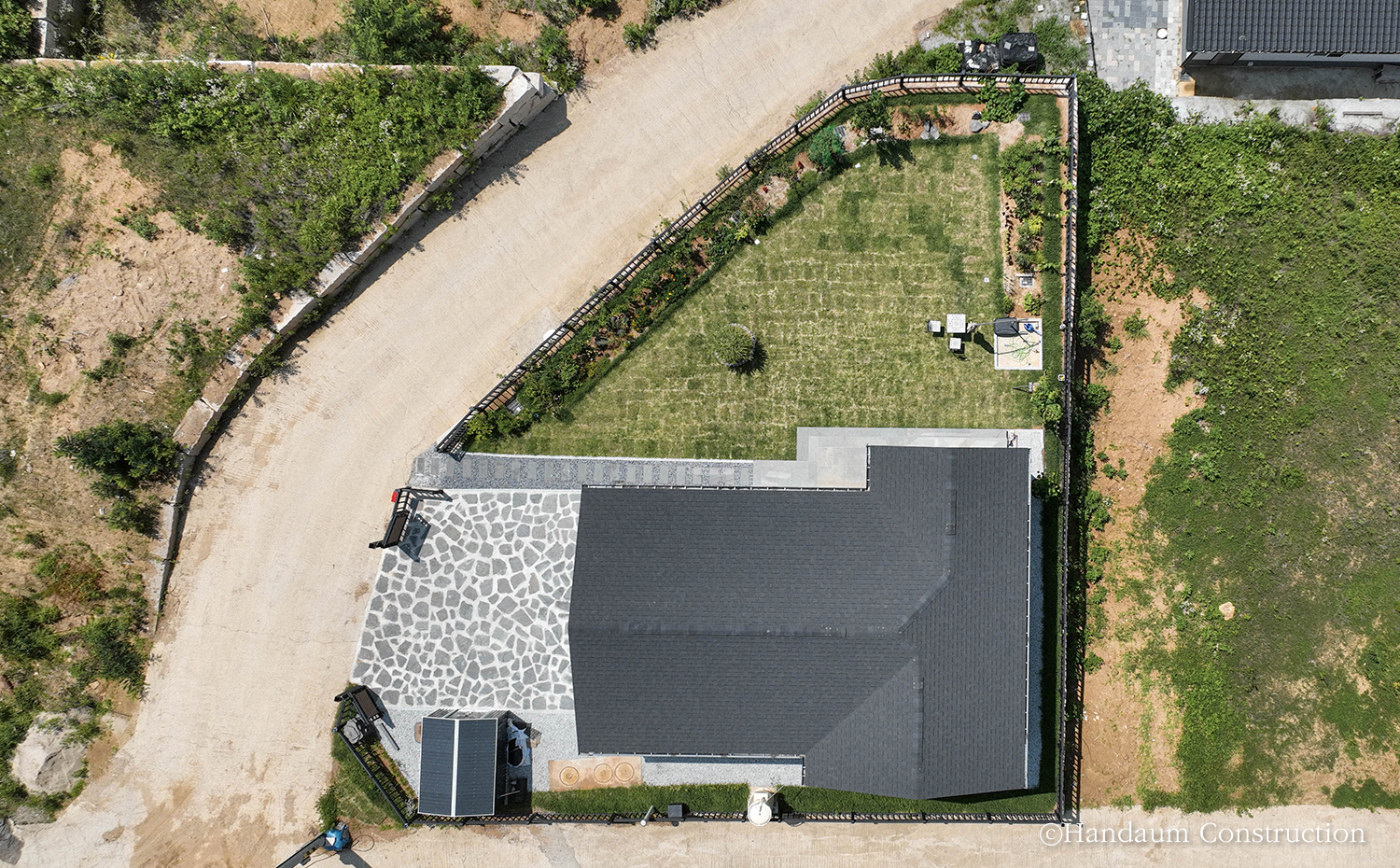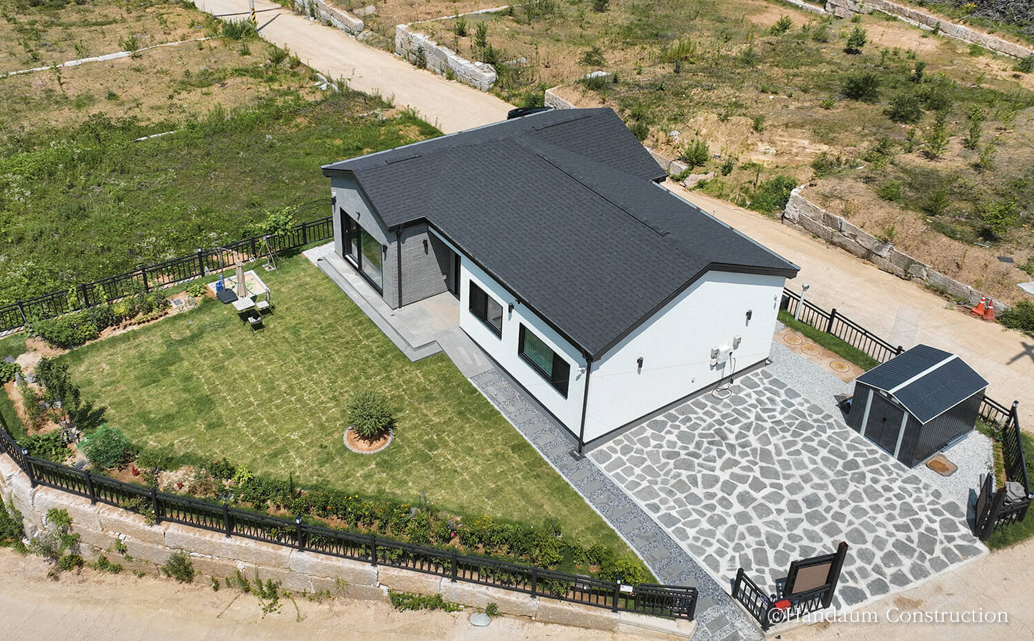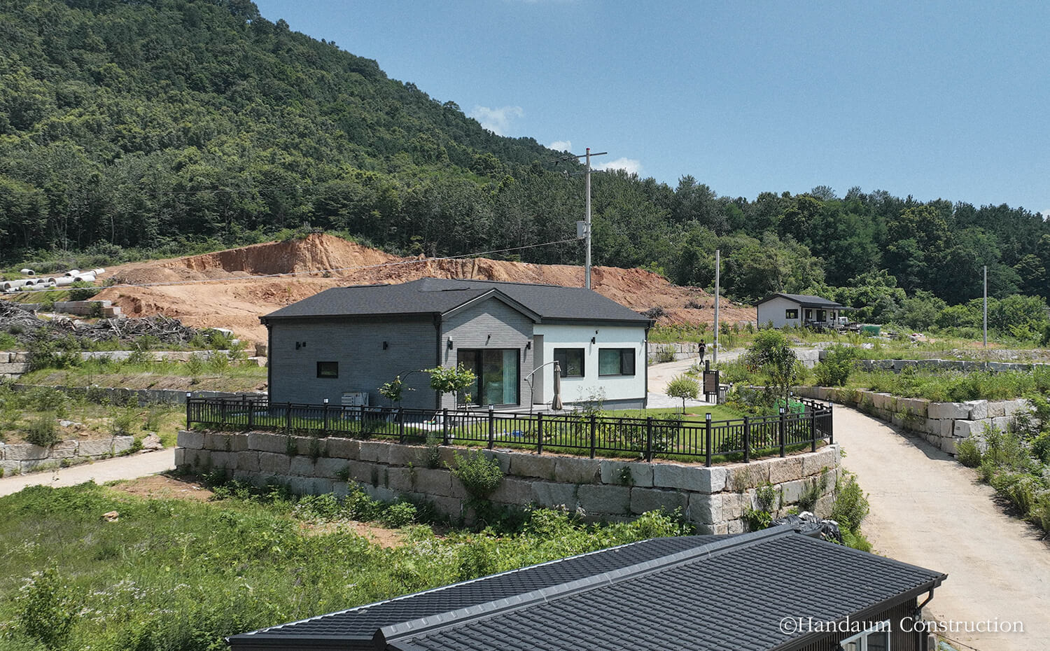 무언가를 꿈꾸고, 그 꿈을 현실로 만들어내는 일은 참 보람된 일이다. 은퇴를 앞둔 건축주는 고향인 양평에 세컨하우스를 계획하며, 실용적이고 합리적인 집짓기를 꿈꿔왔다. 두 사람이 거주하기에 불편함이 없으면서 데드스페이스 없는 공간 활용에 초점을 맞춰 설계된 주택은 거실 전면 매스의 볼륨을 살리고 모노타일로 외장의 포인트를 적용해 간결함과 단순함의 미학을 살려내었다. 획일화된 도심 속 아파트를 벗어나 작은 마당과 쉼을 누릴 수 있는 집은 거주자의 따뜻함 마음과 시간이 더 해져 나날이 예뻐지는 중이다.