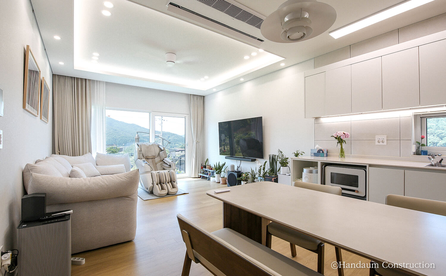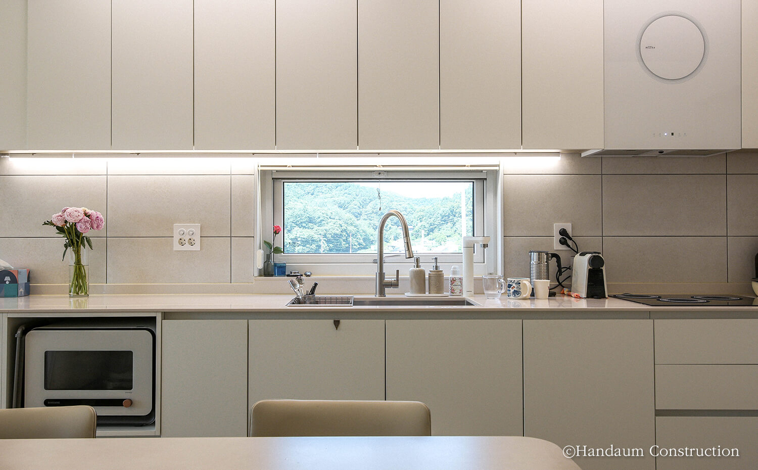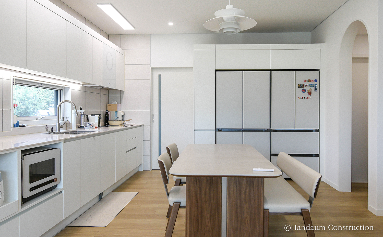 무언가를 꿈꾸고, 그 꿈을 현실로 만들어내는 일은 참 보람된 일이다. 은퇴를 앞둔 건축주는 고향인 양평에 세컨하우스를 계획하며, 실용적이고 합리적인 집짓기를 꿈꿔왔다. 두 사람이 거주하기에 불편함이 없으면서 데드스페이스 없는 공간 활용에 초점을 맞춰 설계된 주택은 거실 전면 매스의 볼륨을 살리고 모노타일로 외장의 포인트를 적용해 간결함과 단순함의 미학을 살려내었다. 획일화된 도심 속 아파트를 벗어나 작은 마당과 쉼을 누릴 수 있는 집은 거주자의 따뜻함 마음과 시간이 더 해져 나날이 예뻐지는 중이다.