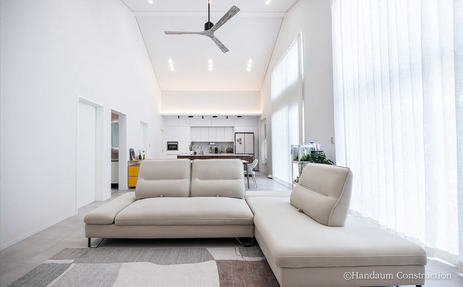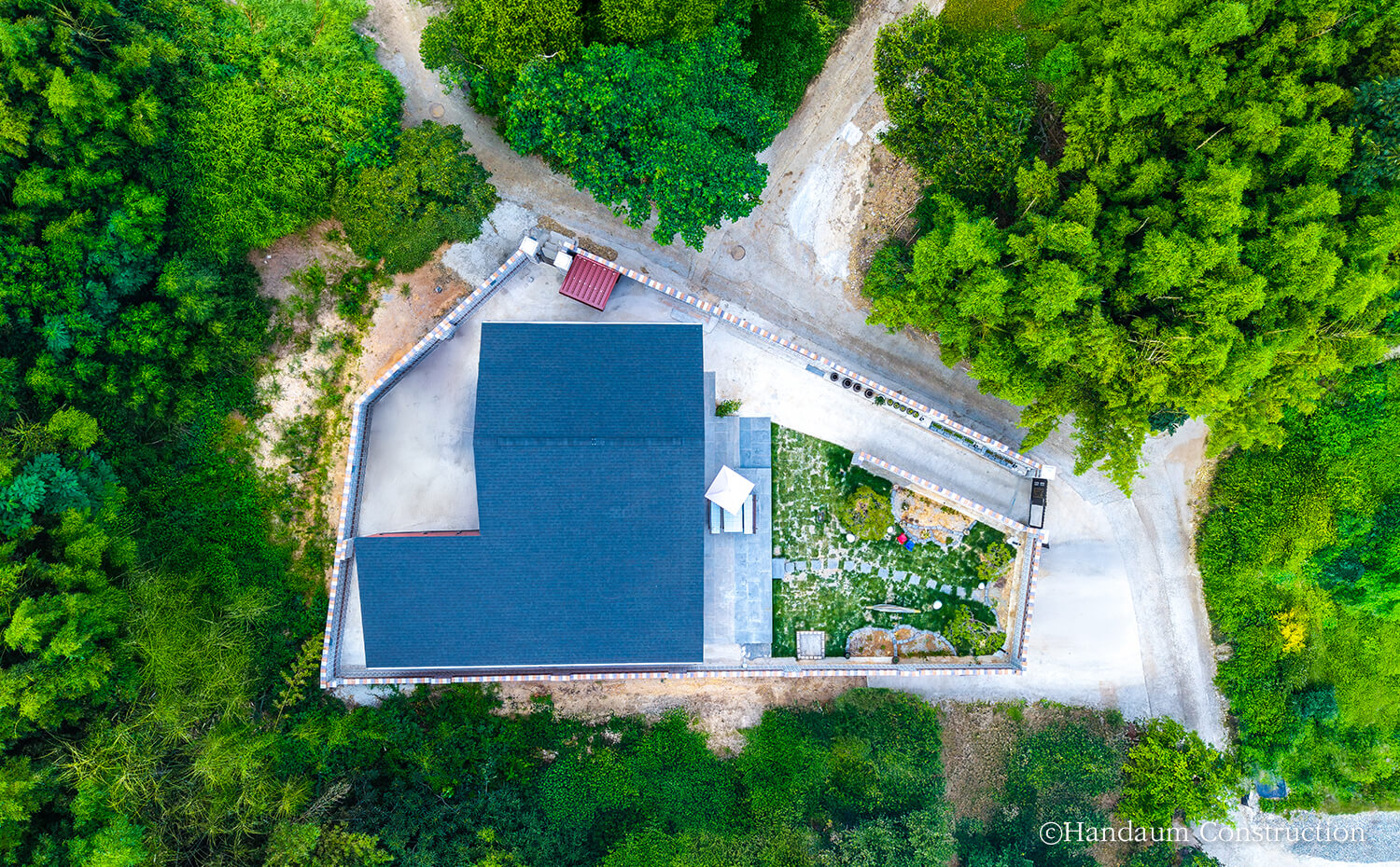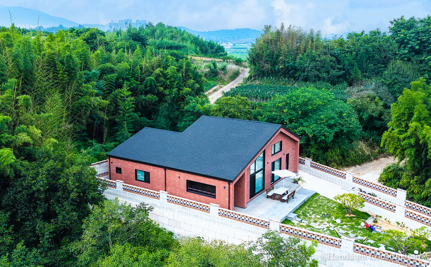 비정형 대지 위에 젊은 신혼부부의 새로운 일상을 담아낸 이 주택은 2층 주택처럼 보이는 단층주택입니다. 독립적인 안방, 현재는 부부의 취미 공간이자 미래를 대비한 2개의 침실, 개방감 넘치는 공용 공간까지 젊은 부부의 니즈를 알차게 담고 있습니다. 특히, 공용 공간은 전면, 침실은 후면으로 배치한 설계는 데드스페이스 없는 공간 활용과 입체적인 지붕 라인이 살리는 요소가 되었으며, 제한된 조건 속에서도 젊은 신혼 부부의 감성과 실용성을 모두 만족하는 집이라는 결과물로 완성되었습니다.