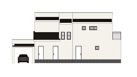 전형적인 블랙&화이트 고급스러운 외관의 모던 주택이다. 각 층별로 포치를 두어 외부공간과의 소통을 중요시 했다. 특히 1층의 포치는 부엌의 공간을 확장하여 바베큐나 소형 캠핑이 가능하도록 설계했다. 또한 거실과 주방을 어긋나게 배치함으로써 공간의 구분을 분명하게 하는 동시에 대각선 시선축이 길어져 공간이 넓게 보이도록 했다.