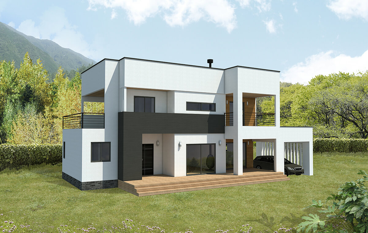 박스형 모던주택에서 느낄 수 있는 현대적인 감성을 내부로 들인 인테리어가 어울리는 이번 설계는 중후하고 무게감있는 블랙 포인트와 컬러 포인트를 활용한 스타일을 적극 추천한다. 심플한듯 직선적인 느낌이 돋보이는 외관 디자인과도 잘 어우러지며, 컬러 포인트를 활용한 인테리어로 유니크하면서 감각적인 인테리어를 완성할 수 있을 것이다.