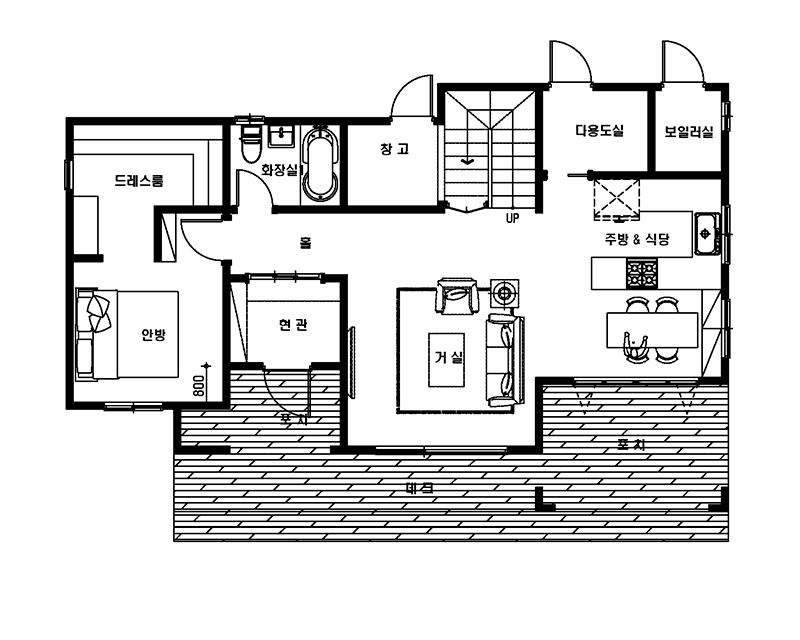공 간 구 성 거실, 주방, 침실3, 욕실2, 가족실, 보조주방, 포치, 발코니, 데크 외