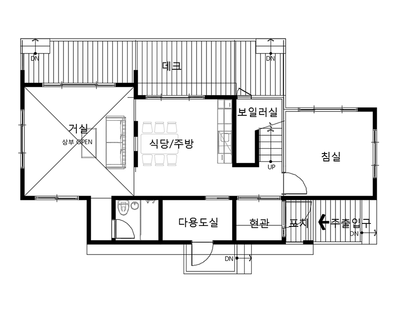 유난스럽지 않은 절제미를 발산하는 이번 설계는 심플하게 꾸며진 형태지만 다양한 마감재를 활용해 단조로움을 덜어내었다. WH 002D와 쌍둥이 처럼 닮아있지만 각기 다른 포인트와 배치의 구성을 비교하며 보는 것 또한 재미이다. 거주자의 취미생활을 즐길 수 있는 2층 서재 공간 앞으로는 발코니를 계획해 자유로이 바깥을 전경을 즐길 수 있도록 다른 공간에서 누릴 수 없는 변화를 주었다.