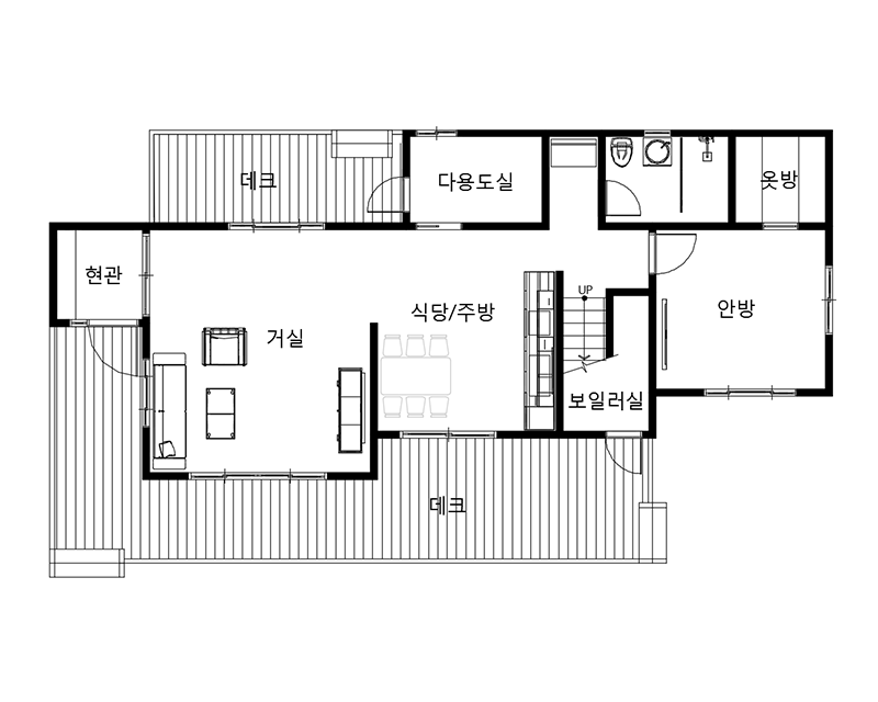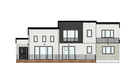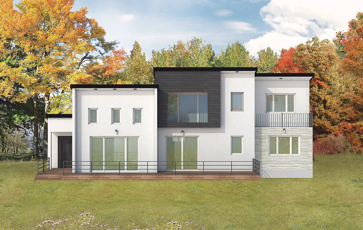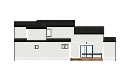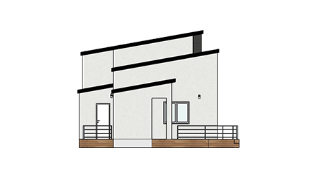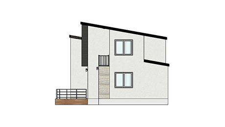 박스형 모던주택에서 느낄 수 있는 현대적인 감성을 물씬 풍기는 이 설계는 깨끗한 백색의 스타코플렉스와 재질과 컬러의 차이를 둔 포인트를 더하여 단순하지 않으면서 조화로운 균형미를 유지하고 있다. 매스의 요소들이 심플한듯 하지만 각 요소들에 다른 포인트들이 적용되어 한곳 한곳 디테일하게 집을 둘러보는 재미가 있다. 거실과 주방은 넓은 공간을 할애하되 각 공간의 역할에 충실할 수 있도록 분리하였으며, 주택 전면으로는 충분한 채광을 느낄 수 있도록 다양한