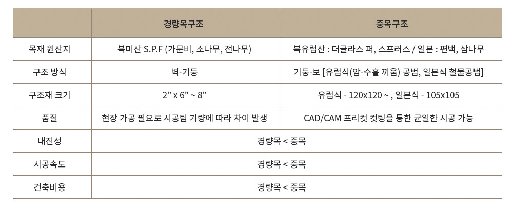 경량목구조 vs 중목구조의 차이
