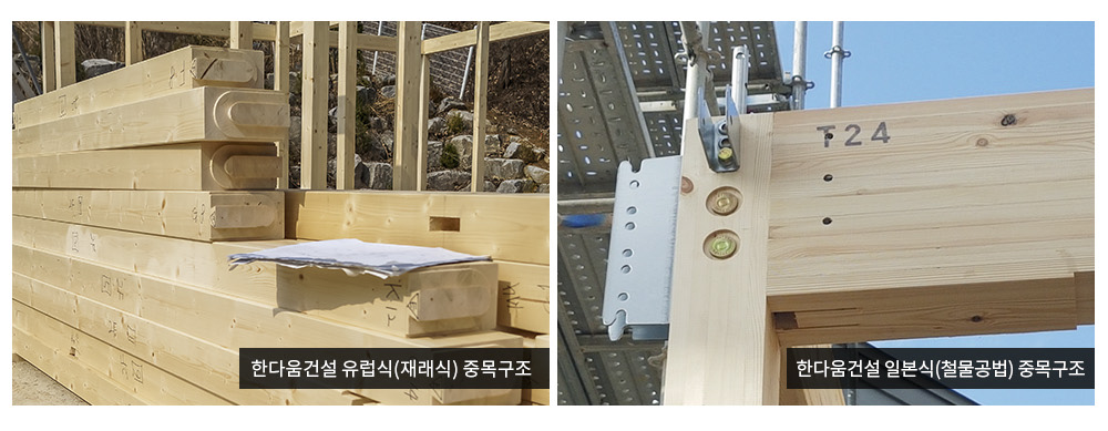 중목구조 주택이 널리 보급된 일본에서도 재래식과 철물 공법을 시공하고 있는데