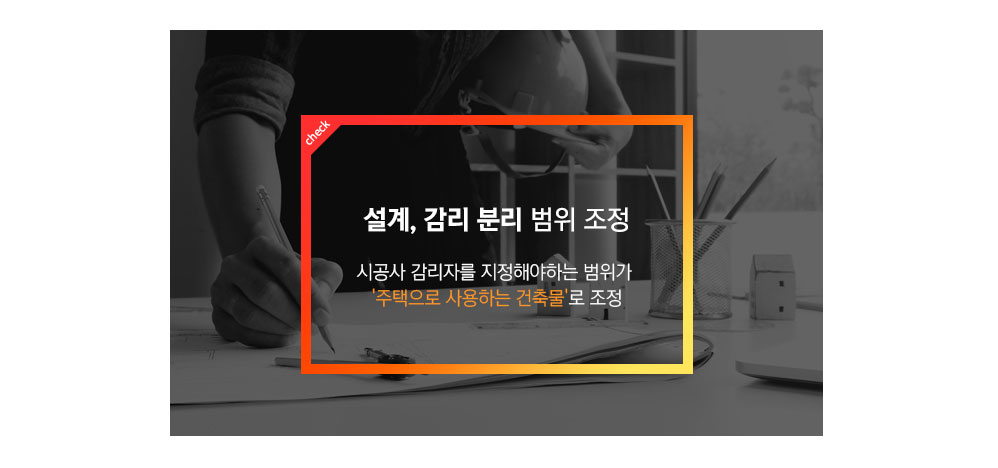 지난 해 2월 국토교통부에서 고시한 건축공사 감리의 개정안을 보면 '공사감리자는 건축물을 설계하는 설계자의