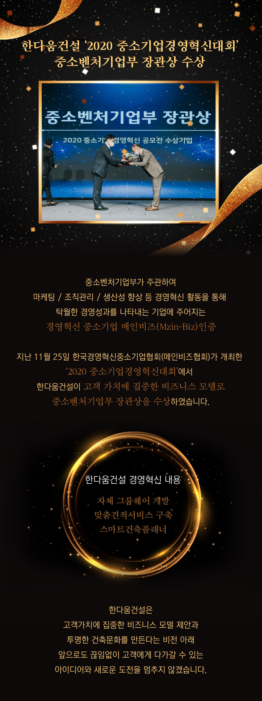 '2020 경영혁신대회' 한다움건설 중소벤처기업부 장관상 수상