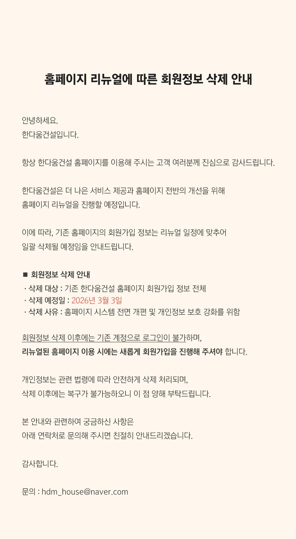 홈페이지 리뉴얼에 따른 회원정보 삭제 안내