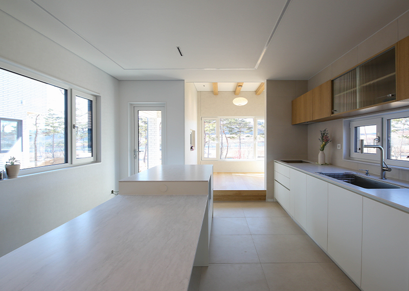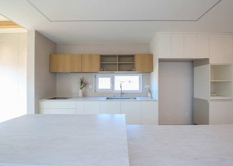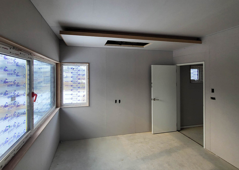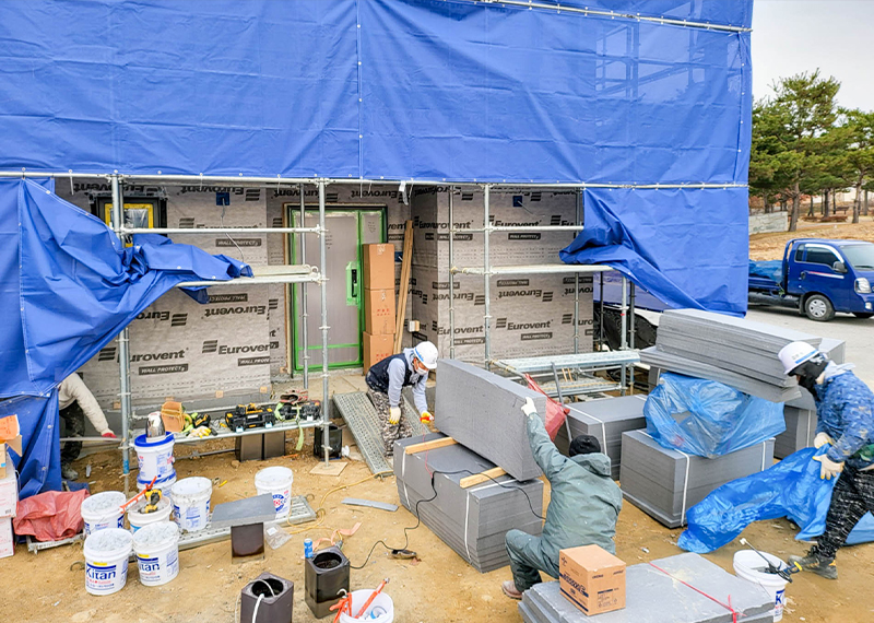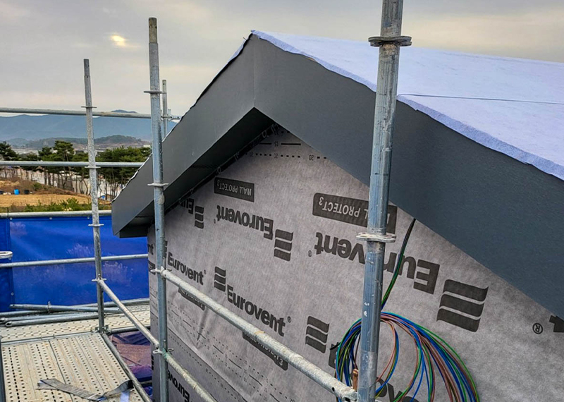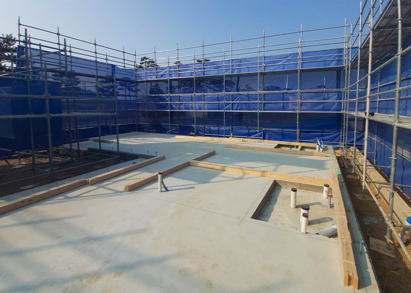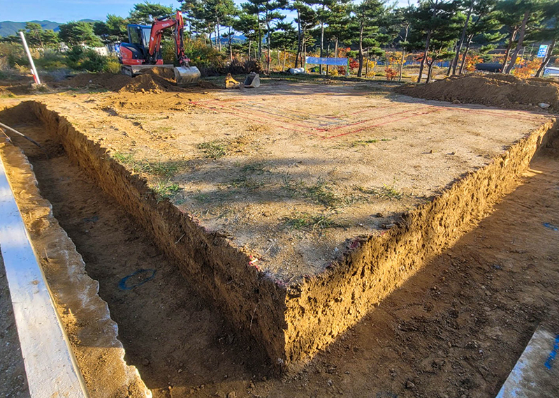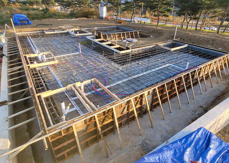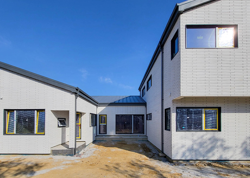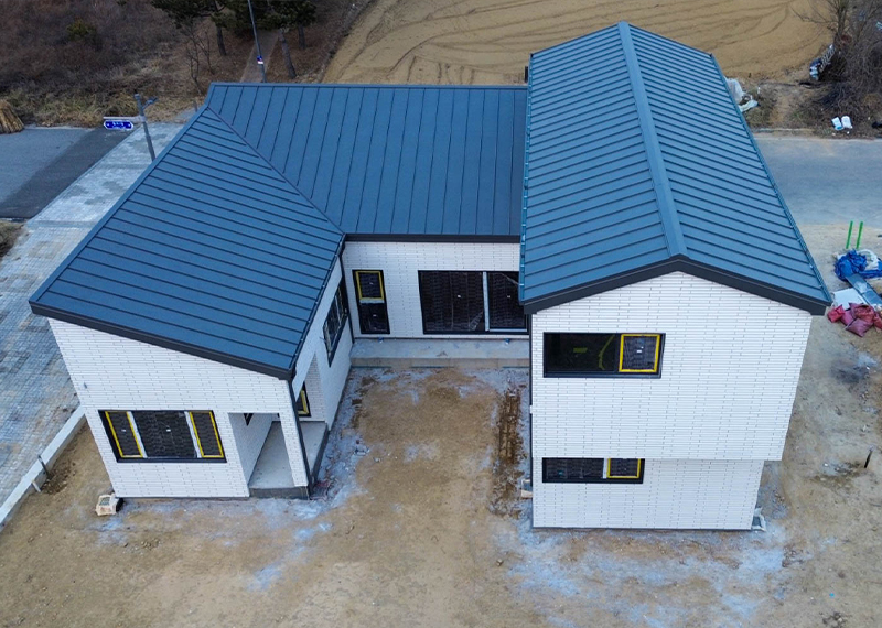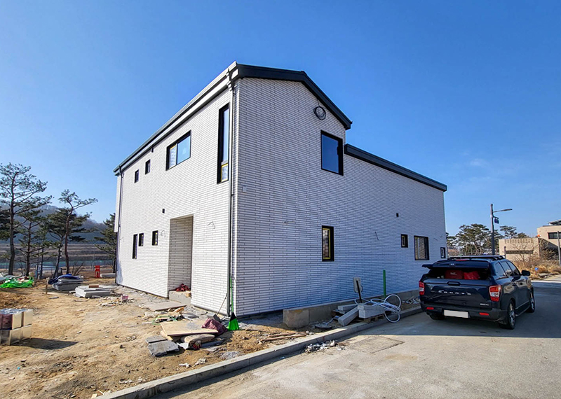 안동 프로젝트의 건축주님은 주택을 지어본 경험이 있으셨고, 기존 집은 옆집과 인접해있고 창호가 많아 프라이빗한 공간이 없어 불편을 느껴 건축을 결정하게 되셨다고 합니다. 택지 근처에 한다움건설이 한다움건설이 시공하는 현장을 지켜보면서 관심을 갖게 되었고 계약을 진행해주셨습니다. 건축주님과 현장미팅을 가지며 기존 주택의 불편사항들을 보완하는 설계를 진행하기로 하였으며, 이를 위해 프라이빗한 형태의 ㄷ자 형태로 중정마당을 확보하기로 하였습니다. 이외에도 건축주님의 요구사항을 반영하여 경사지붕 디자인과 밝은 톤의 지붕재, 외장재로 주택이 전반적으로 밝고 화사하게 보이도록 디자인하였습니다. 건축주님과 가족분들의 밝고 따스한 집이 하루 빨리 완공될 수 있도록 튼튼하고 안전하게 시공하도록 하겠습니다.