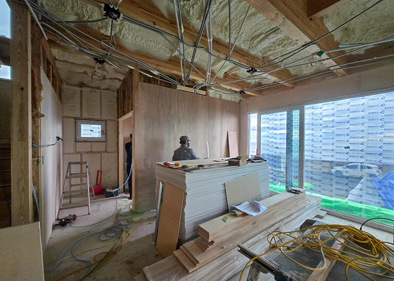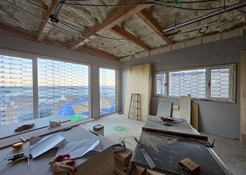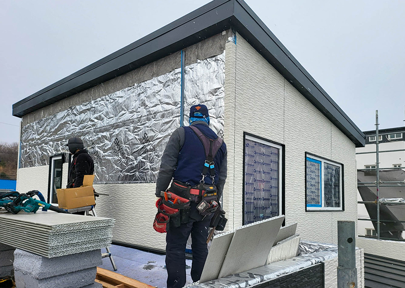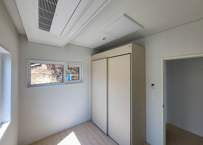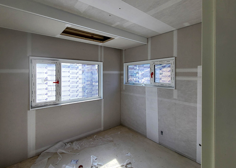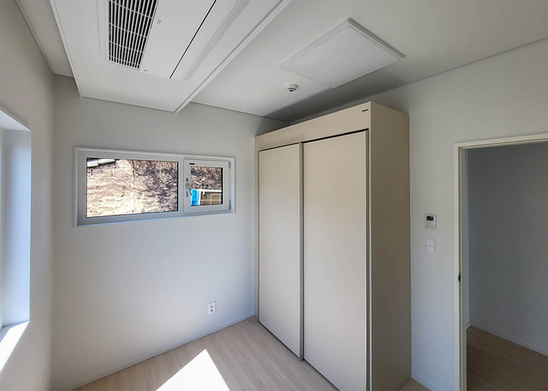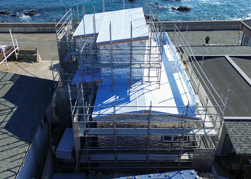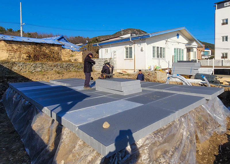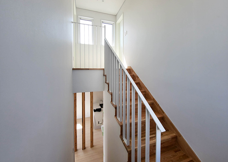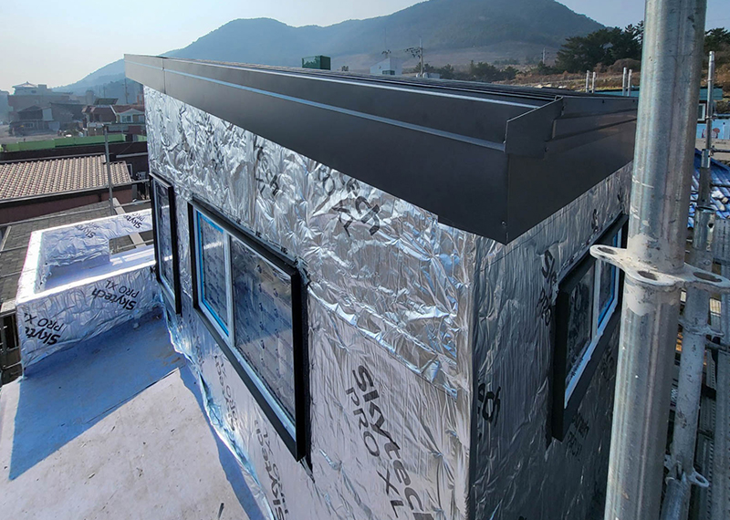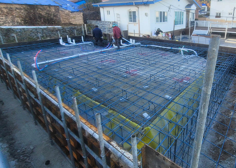 평소 낚시를 즐겨하시는 건축주님은 바다 바로 앞 대지에 건축을 계획하고 계셨습니다. 낚시를 하기도 하고 친인척분들을 모시고 시간을 보낼 수 있는 세컨하우스 용도로 짓고자 하시며, 탁 트인 바다가 바로 보일 수 있길 원하셨습니다. 하지만 땅이 세로로 길기 때문에 모든 실을 바다쪽으로 배치하기엔 한계가 있어 거실, 주방, 안방 순으로 배치하였고 거실-주방을 연결시켜 바다가 보이게 설계하였습니다. 또 바다 근처이기 때문에 자재에 관련해 궁금한 점이 많으셨고, 외장 손상에 크게 영향이 없는 세라믹사이딩을 추천드렸습니다.