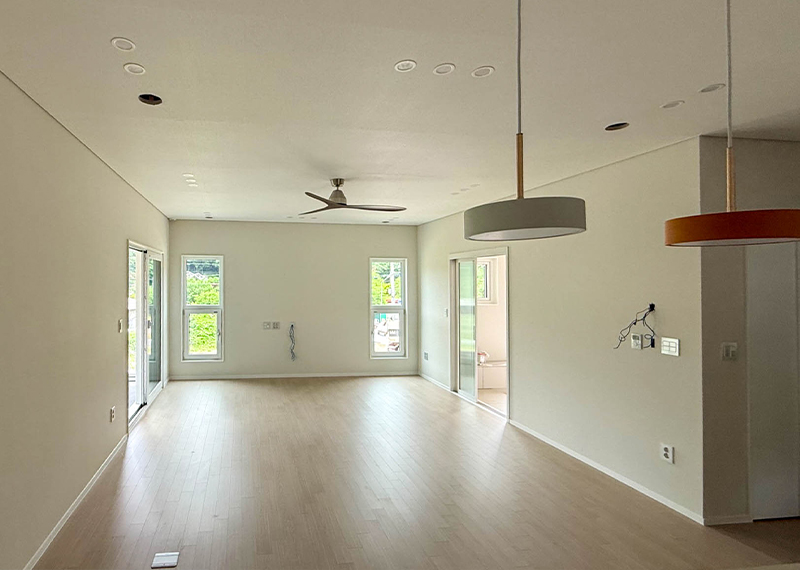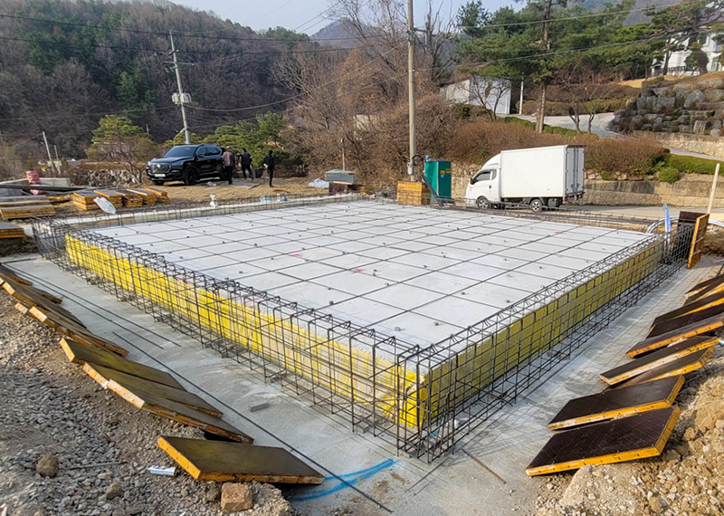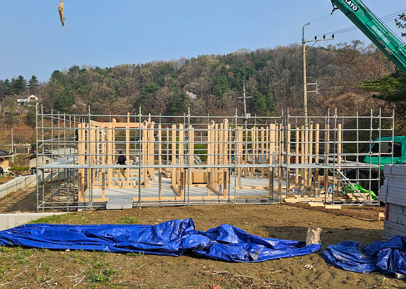 건축을 계획 중이셨던 건축주님은 토지 선택부터 고민이 많으셨고, 한다움건설의 가이드를 통해 적합한 토지를 결정하셨습니다. 이후 건축박람회에서 상담을 진행하시며 시공 품질과 중목구조 공법 등 전반적인 시스템에 만족하셔서 계약을 체결하게 되었습니다. 설계 단계에서는 네모반듯한 외형과 중앙 거실을 중심으로 한 독립적인 공간 구성, 그리고 포치 공간에서 식물을 기를 수 있는 실내 공간을 요청하셨습니다. 안정감 있는 모임지붕과 스타코 외장재에 포인트 마감재를 더해 디자인을 완성했으며, 현재 착공이 진행 중입니다. 신뢰를 바탕으로 시작된 소중한 보금자리를 끝까지 정성껏 시공하겠습니다.