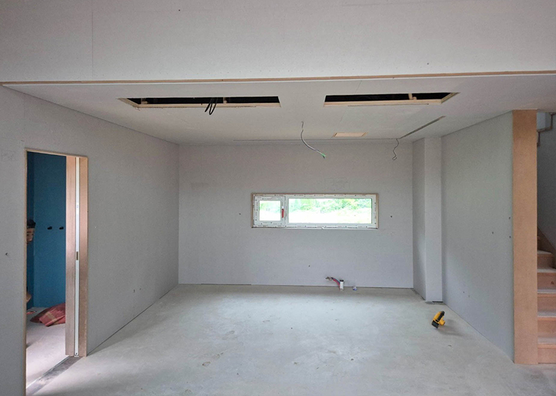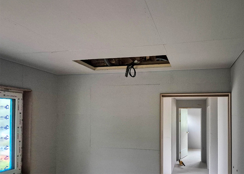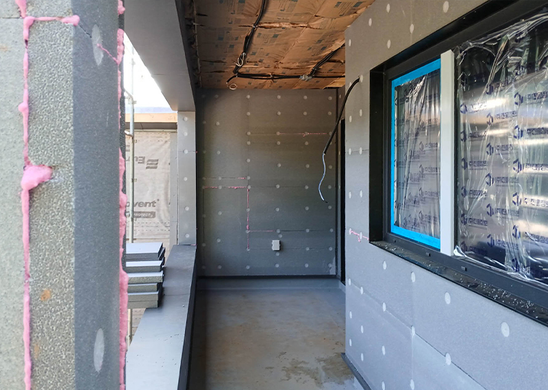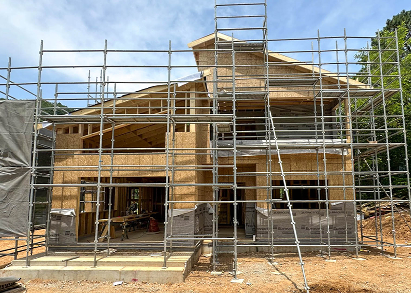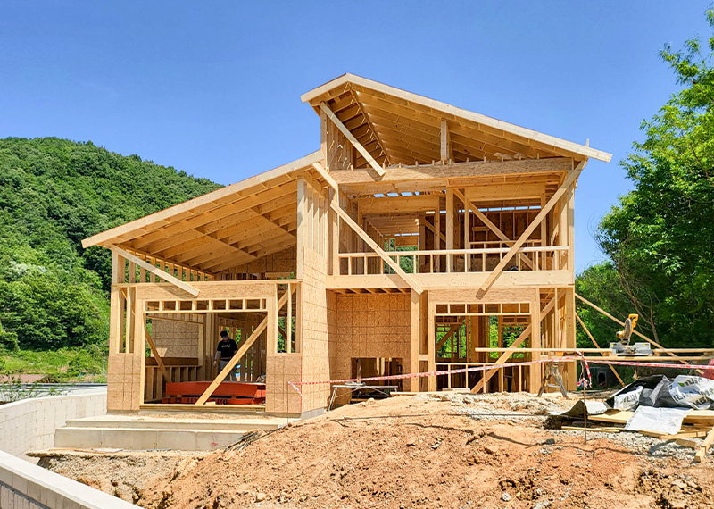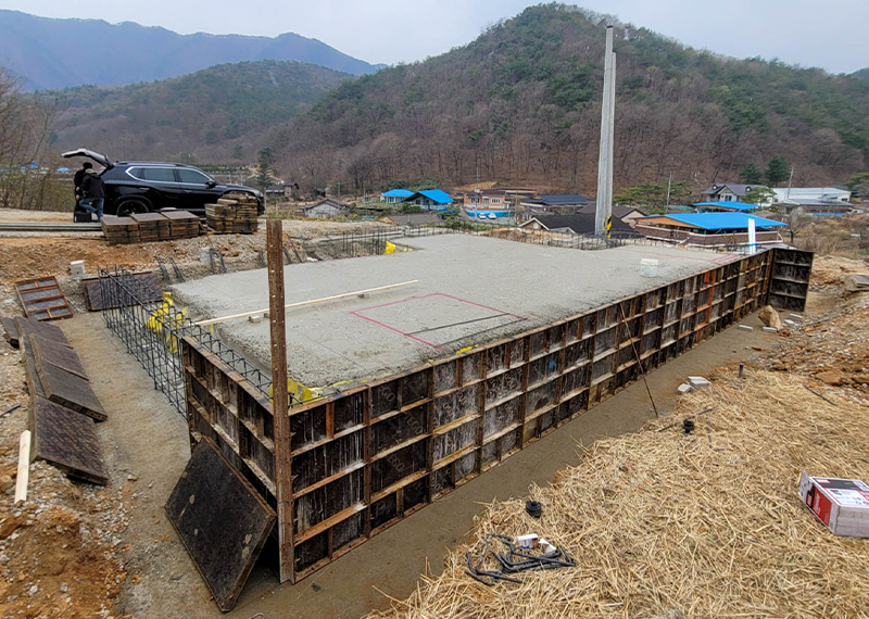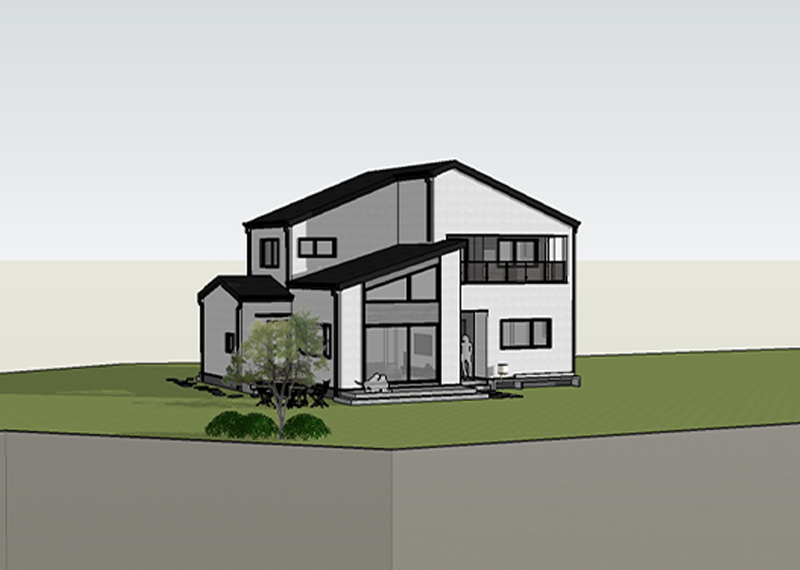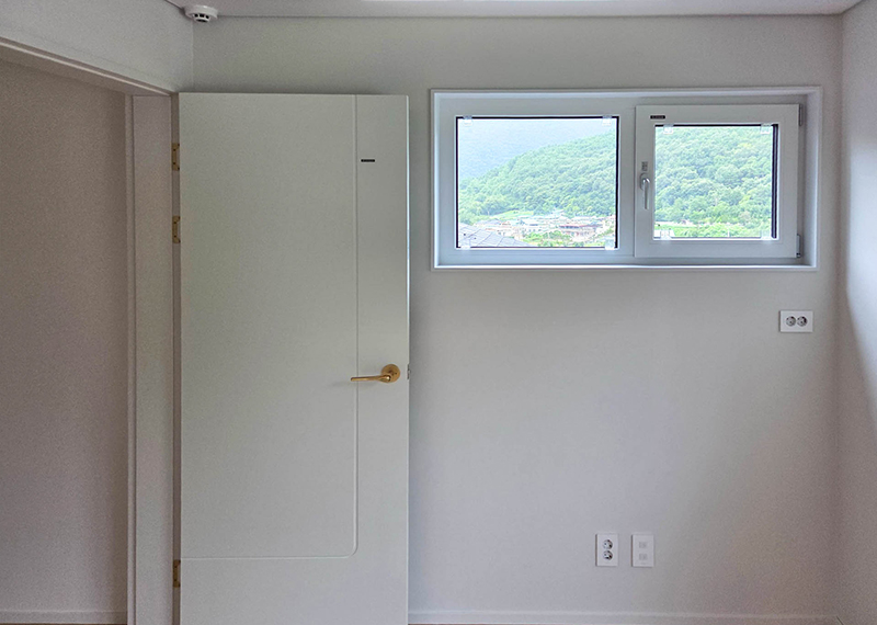 홈페이지를 통해 문의를 주신 건축주님은 여러 업체와 상담을 병행하시던 중, 현장 미팅을 통해 대지의 가장 큰 이점인 탁 트인 경관과 소나무를 살린 설계를 원하셨습니다. 건축주님의 니즈와 라이프스타일을 고려하여 상담을 도와드렸고, 최종적으로 한다움건설과의 상담 후 신뢰를 바탕으로 계약이 진행되었습니다. 설계는 남향의 아름다운 뷰를 고려해 거실과 안방을 배치하고, 거실과 주방은 일자로 연결해 개방감을 살렸습니다. 2층에는 포치를 두어 자연을 더 가까이 즐길 수 있도록 했으며, 외관은 단정한 박공지붕과 스타코 마감에 포인트 타일을 더해 안정감 있게 완성했습니다.