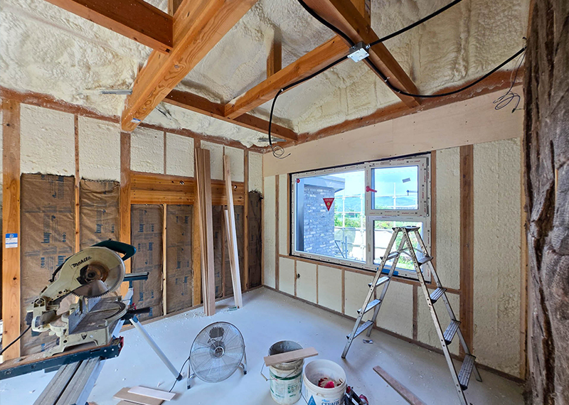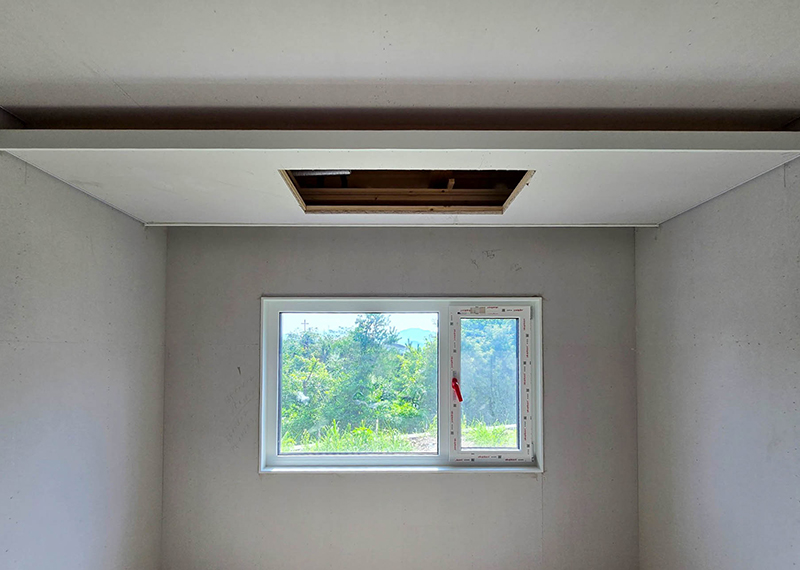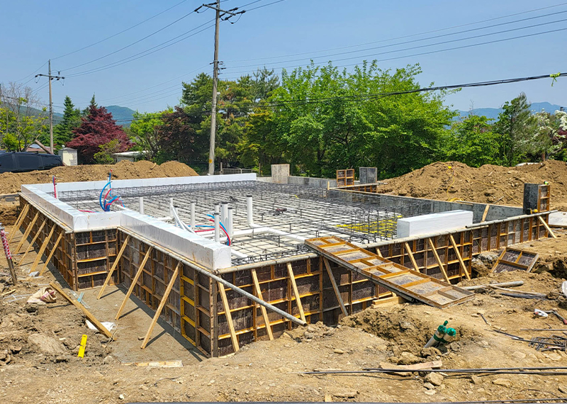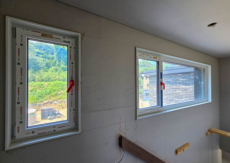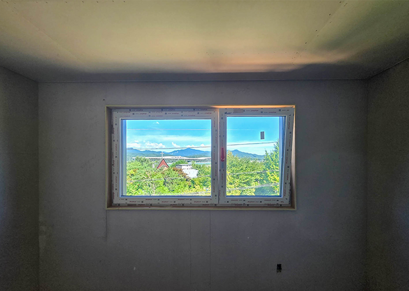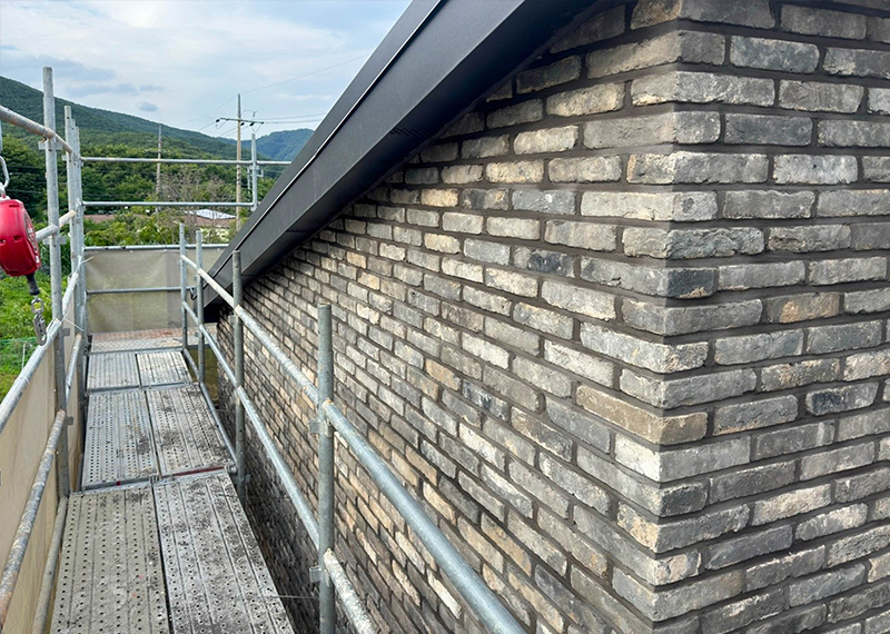 건축주님은 처음 현장을 방문하셨을 때부터 북한강이 한눈에 내려다보이는 동향의 탁 트인 전망에 반하셨습니다. 자연스럽게 주거공간의 모든 방에서 강을 바라볼 수 있도록 동향 배치를 우선으로 계획하였고, 거실과 주방은 일직선으로 연결해 넓고 시원한 공간감을 강조했습니다. 특히 거실은 오픈 천장으로 개방감을 더해 가족들이 함께하는 공간의 품격을 높였습니다. 외관은 단정하면서도 시간이 지나도 멋스러움을 잃지 않는 벽돌 마감으로 안정감을 주었고, 지붕은 건축주님이 초기에 선호하셨던 징크 마감으로 모던하고 세련된 인상을 완성했습니다.