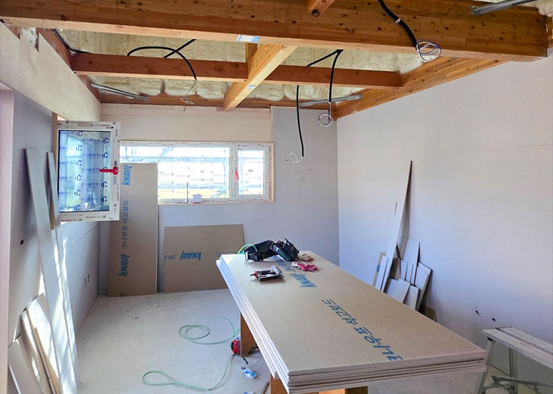 기존에 살고 계신 집을 매매하고 주택생활을 해보고싶은 건축주님께서 처음에 콘크리트공법으로 주택을 지으려 했으나, 한다움건설 오픈하우스 행사에 오셔서 목조주택을 직접 보시고 생각을 바꾸셨습니다. 그러면서 자연스럽게 목조에 대하여 공부하시게 되고, 경목과 중목도 알게 되시면서 목조 노출의 매력을 느끼시며 중목으로 주택을 희망하셨습니다. 한다움건설을 믿고 맡겨주신 건축주님을 위해 예쁜 집을 지어드릴 수 있도록 약속드리겠습니다.