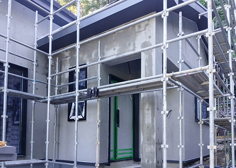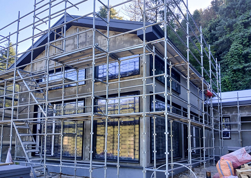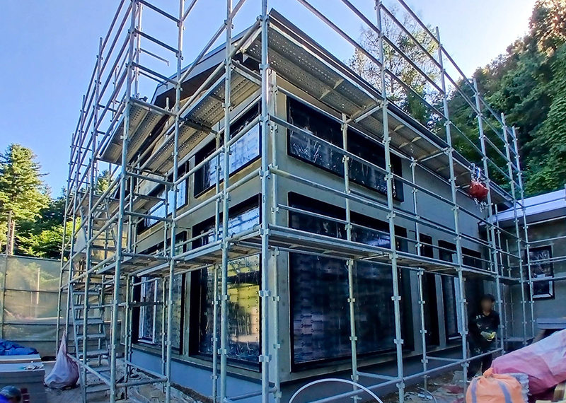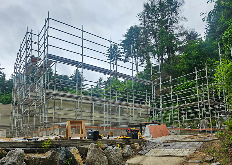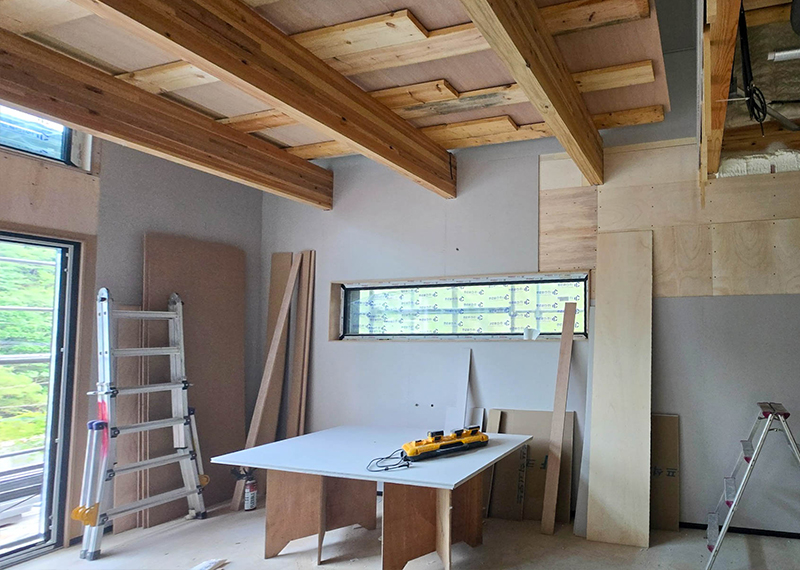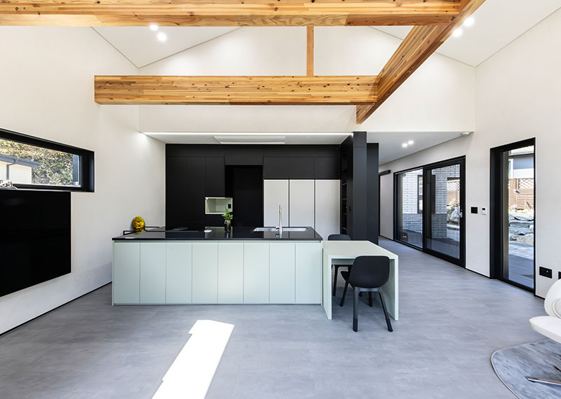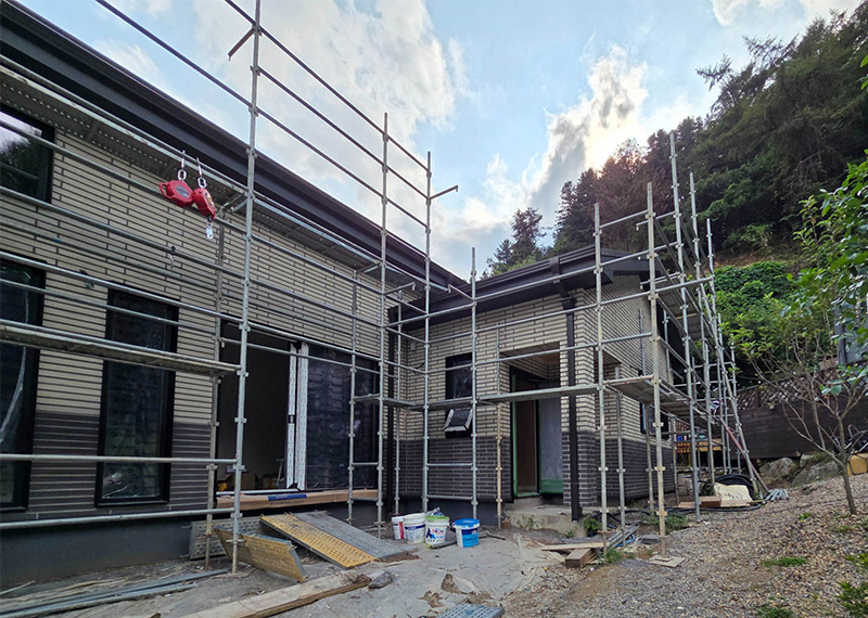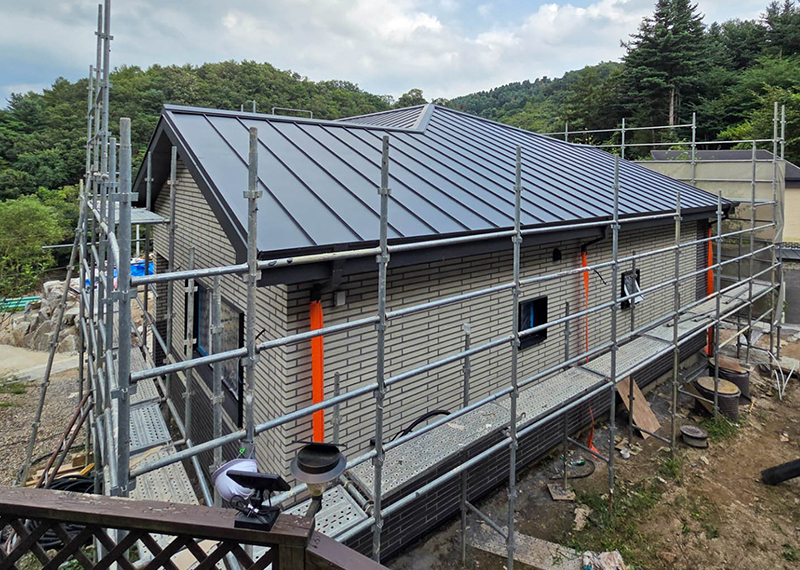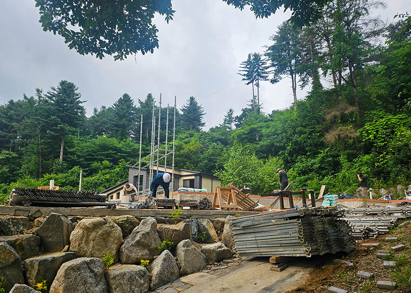 올해 초 세텍 박람회에서 처음 인연을 맺은 건축주님은 가평에 세컨하우스를 계획 중이셨습니다. 기존 경량목구조로 설계 및 기초공사가 완료된 상태였지만, 중목구조의 장점을 안내해드린 후 직접 현장을 확인하고 계약이 진행되었습니다. 구조 변경 범위를 최소화하며 다락을 제외하고 욕실을 증평하는 등 실용적인 공간 개선이 이루어졌습니다. 특히 거실-주방은 오픈천장으로 계획해 더욱 쾌적한 공간감을 확보하였습니다. 기존 입면 디자인을 유지하되, 거실 상부만 변경하여 설계 안정성과 디자인 완성도를 모두 갖춘 사례입니다. 설계부터 시공까지 신뢰로 함께해주신 건축주님께 진심으로 감사드립니다.