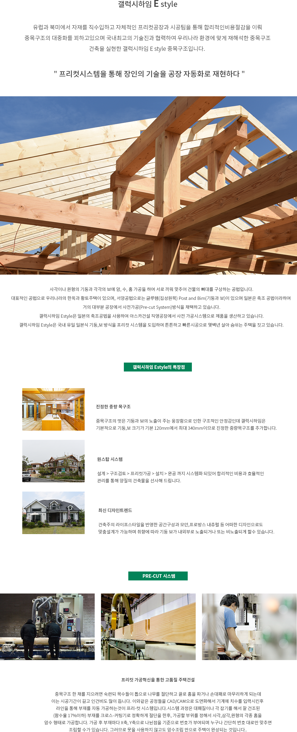 한다움 건설의 중목구조 브랜드 갤럭시하임은 유럽식 중목구조와 일본식중목구조의 두가지 라인으로