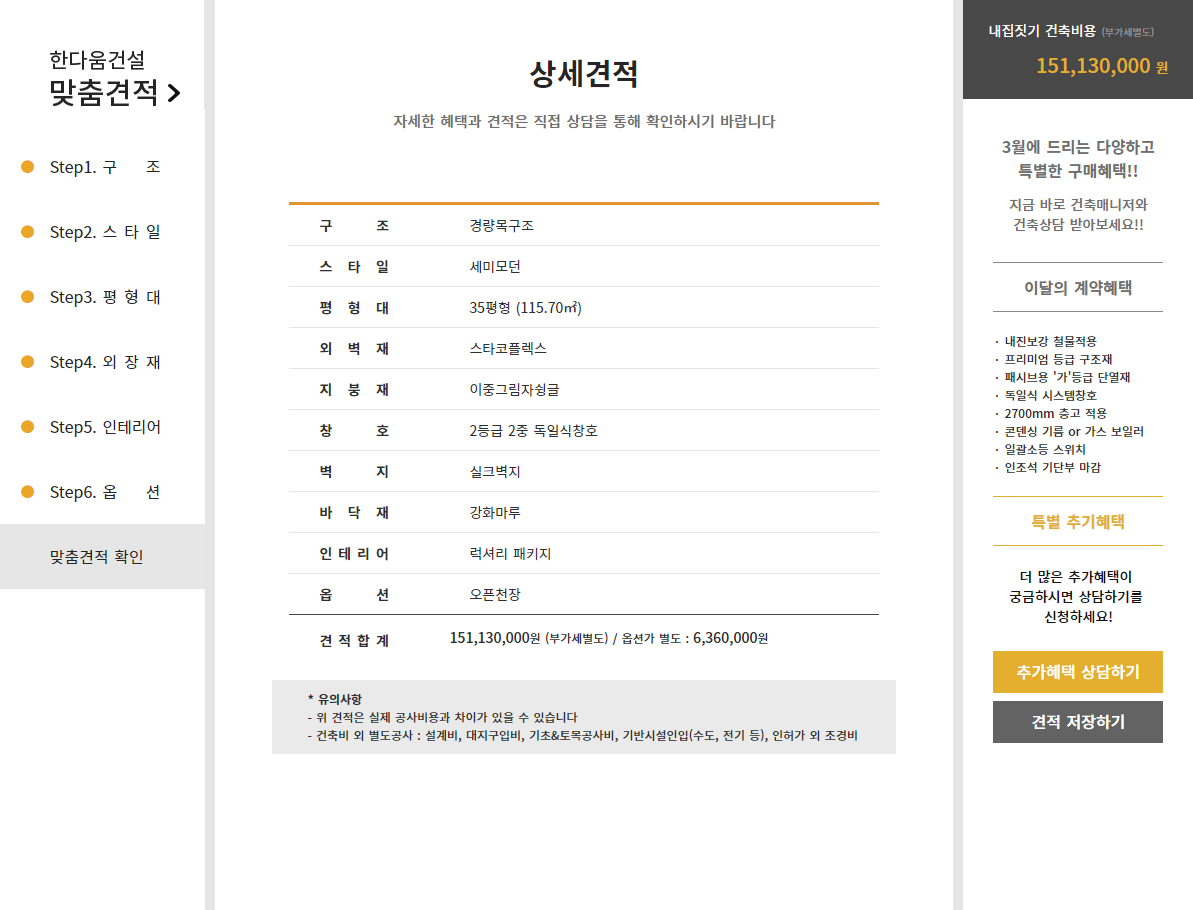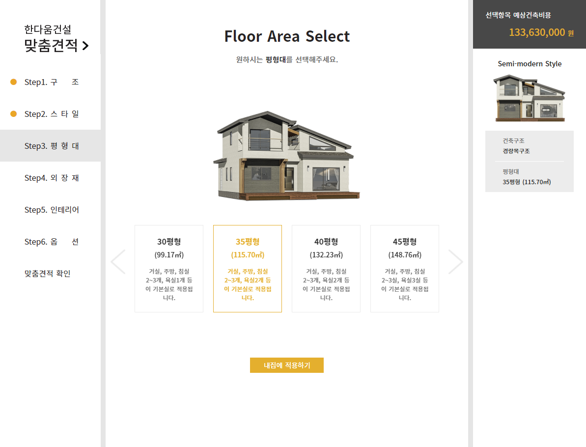 실시간 주택 건축비용 견적 서비스