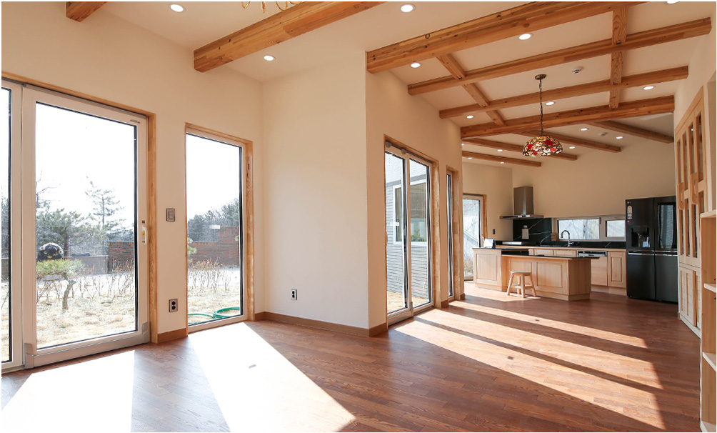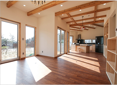 건축주의 라이프 스타일을 반영한 공간구성과 모던, 프로방스, 내츄럴등 다양한 스타일을 연출할 수 있다. 또한 내부의 구조재 부분의 노출이 가능하므로