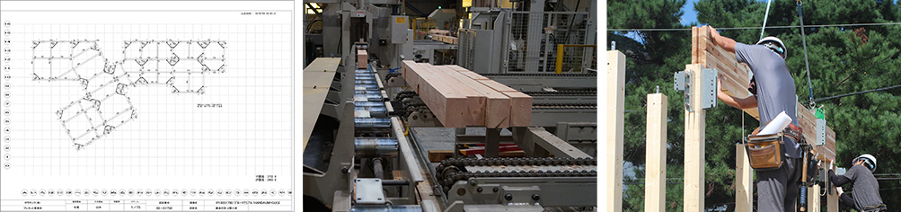 CAD/CAM 프로그램을 통한 데이터 입출력으로 가공의 정밀도를 높입니다. 목수 개개인의 기술에 의한 가공이 아니기 때문에,