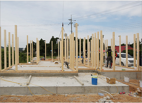 입고 후 1-2일 안에 골조를 완성할 수 있습니다. 이밖에도 프리컷 컷팅을 통한 시공으로 정밀도가 높고 균일한 품질의 주택을 시공할 수 있다.