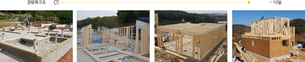 일반적으로 현장에서 가공 및 재단을 필요로 하는 경량목구조 주택의 골조 시공 기간이 약 7~10일 걸린다면, 중목구조의 경우 프리컷 컷팅된 부재를