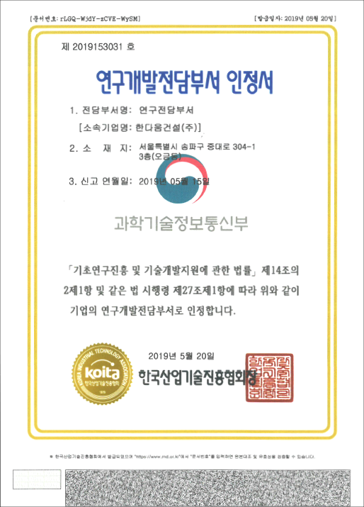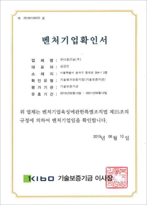 우수기업 선정에 전원주택전문 한다움건설이 2019년 전원주택, 단독주택 업계 최초